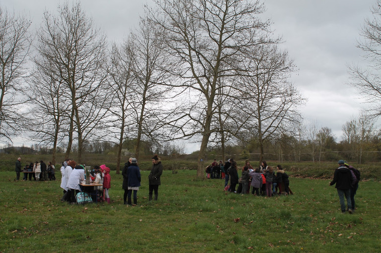 Depuis la rentrée des vacances, Les CM1-CM2 se penchent sur une autre partie du projet qui consiste à étudier huit essences d’arbres pour réaliser des fiches d’identité de chacune d’entre elles. Ces fiches seront intégrées au site Internet de l’école (www.ecole-stgerme.armagnacadour.fr) et feront partie d’un plus vaste projet intitulé « Patrimoine et QR code (1) » et initié par les animateurs informatiques départementaux. Chaque fiche réalisée fera l’objet de la publication d’un QR code qui sera affiché sur l’arbre choisi. Chaque promeneur pourra à loisir, scanner ce QR code avec son téléphone, afin de découvrir les caractéristiques de l’arbre et l’histoire de son utilisation par l’homme depuis le néolithique. Enfin, le 19 mars, pour « l’Acte 3 de l’aventure », la petite troupe s’est élancée vers les terrains communaux de Saint-Mont pour planter près d’une quarantaine d’arbres, de huit essences locales différentes. C’était fait vers midi, heure à laquelle tout le monde était rapatrié à l’école de Saint-Germé, afin de se réchauffer après avoir subi le froid glacial qui régnait ce matin-là. La journée s’est poursuivie par une série d’ateliers tenus par les étudiants, où l’ensemble des élèves a pu parfaire ses connaissances sur l’arbre, la forêt et son biotope.