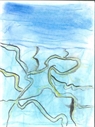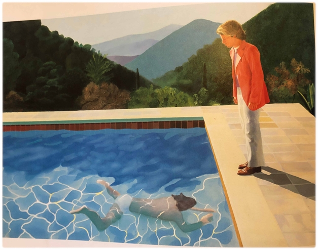 Nous avons d'abord commencé par regarder un diaporama avec des œuvres d'arts d'époques différentes, dans lesquelles il y avait de l'eau. Nous avons ensuite discuté de chacune de ces œuvres, de la technique, de la couleur, de la matière, de la lumière... tout ce qui nous passait par la tête. Maître a noté et après nous avons choisi la peinture que nous avons préférée. C'est la piscine de David Hockney