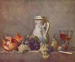 Nous avons d'abord commencé par regarder un diaporama avec des œuvres d'arts d'époques différentes, dans lesquelles il y avait des raisins. Nous avons ensuite discuté de chacune de ces œuvres, de la technique, de la couleur, de la matière, de la lumière... tout ce qui nous passait par la tête.